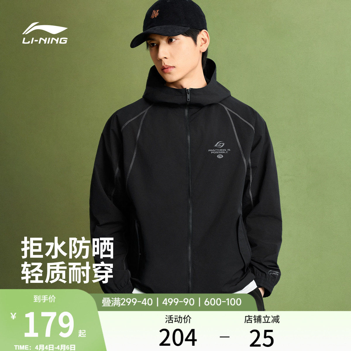 李宁外套男2026新品健身跑步连帽夹克上衣防泼水春季梭织运动风衣