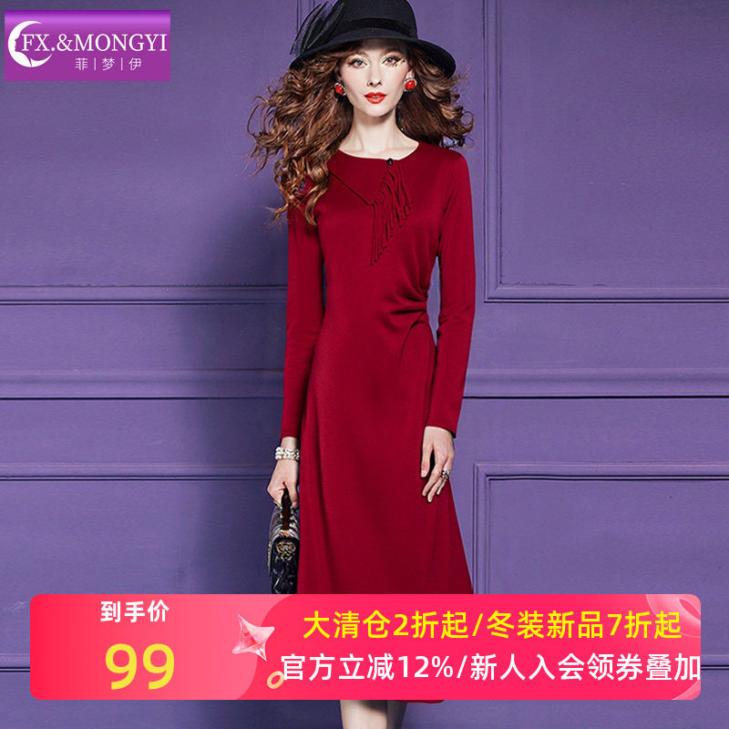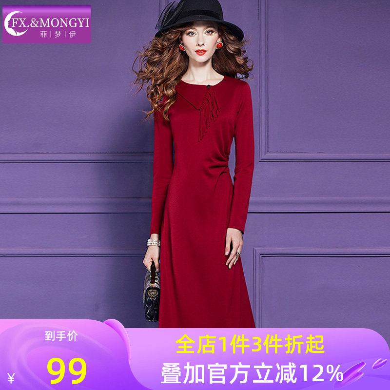 - 衫女针织毛衣裙包臀长款打底连衣裙