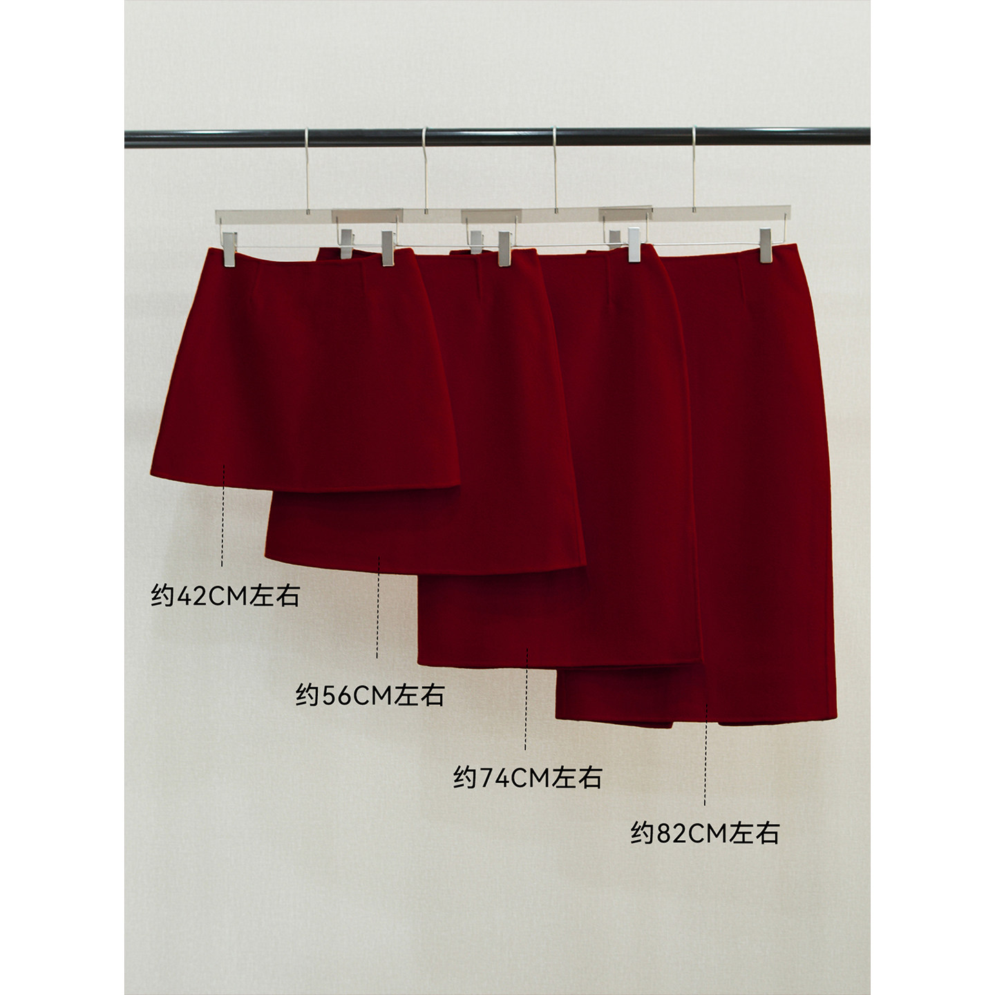 正红色中国红半身裙A版直筒包臀短中长双面羊毛呢绒喜庆婚礼保暖