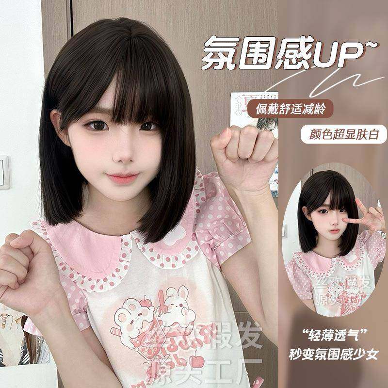 AG假发女短发网红lolita齐刘海逼真头皮甜美jk日韩自然哑光短直发