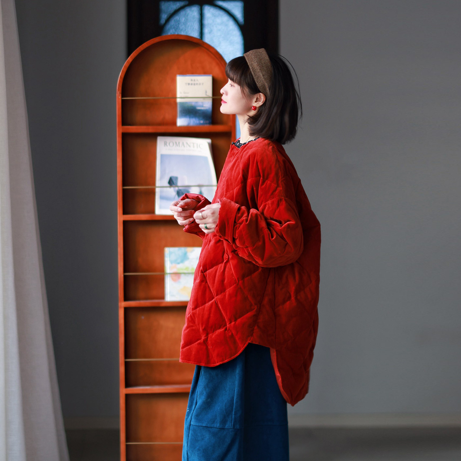 灯芯绒面料 半圆原创女装[复古]2025秋冬宽松休闲拼接羽绒服女