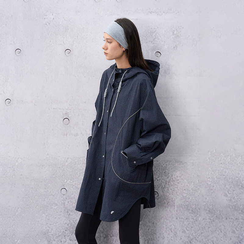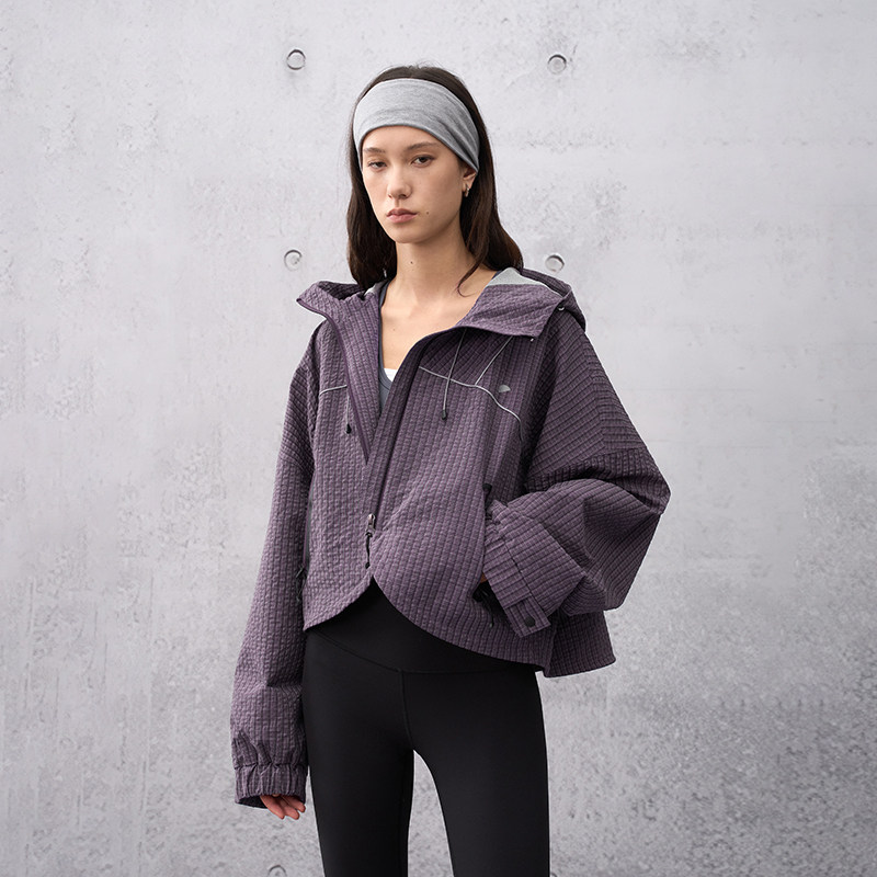 格纹面料 半圆原创女装[运动]2026春分割感连帽短款拼接外套女
