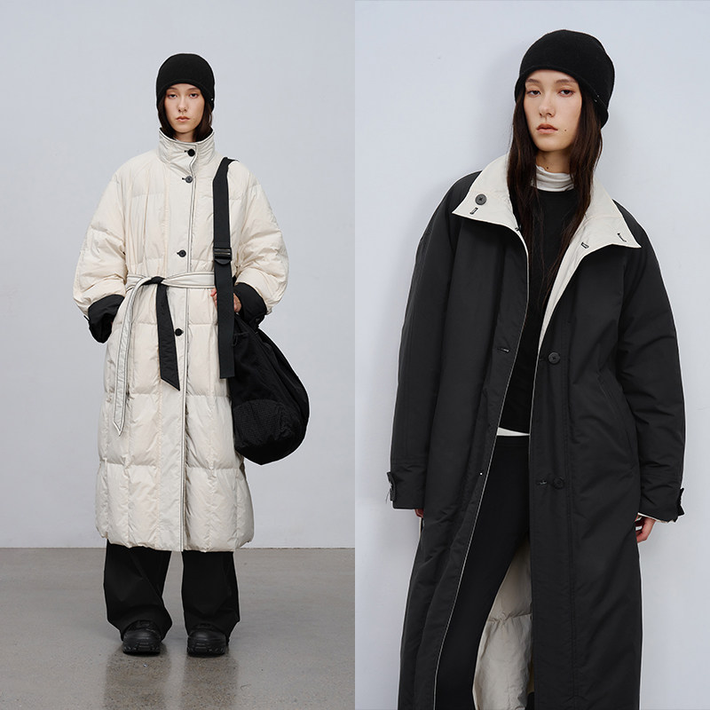半圆原创女装[运动]2025秋冬挺括双面穿立领保暖可收腰羽绒服女