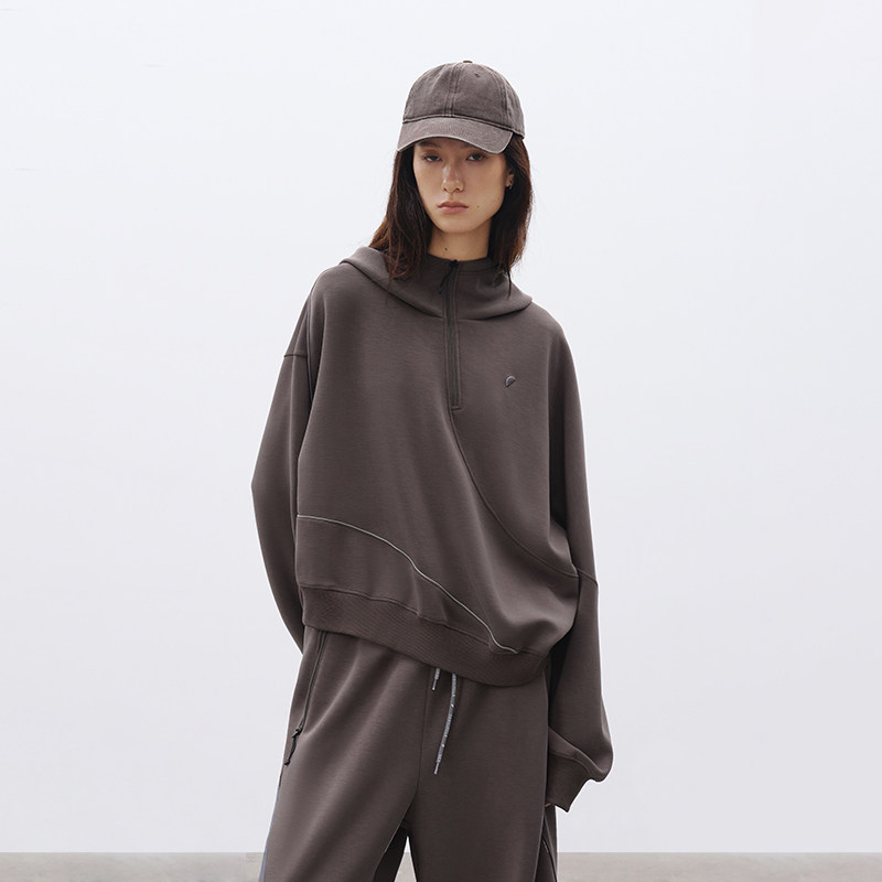 半圆原创女装[运动]2025冬季宽松休闲半高领半拉链螺纹收腰卫衣女