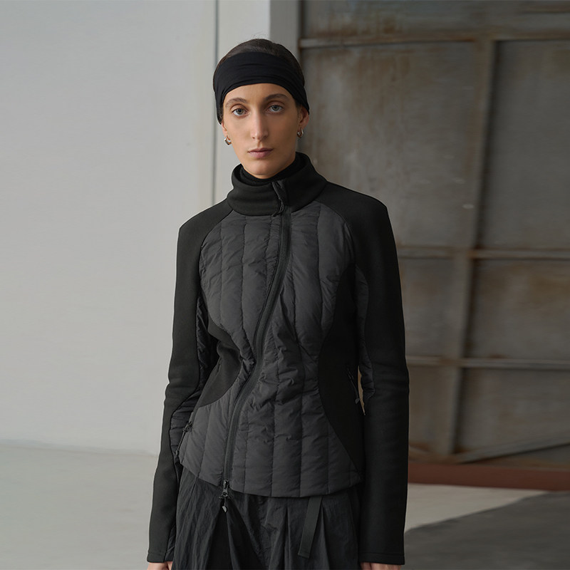 【特价】半圆原创女装2025秋冬宽松休闲立领不对称线条羽绒服女