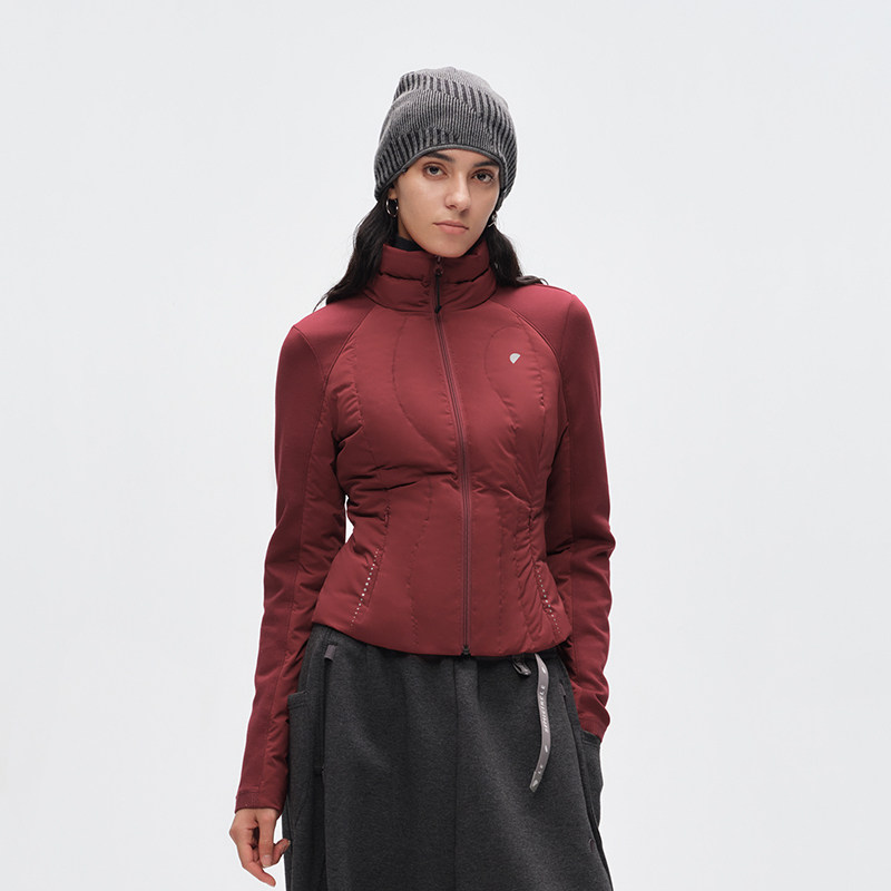 肤感膜面料 半圆原创女装[复古]2025冬季红色拼接紧身修身羽绒女