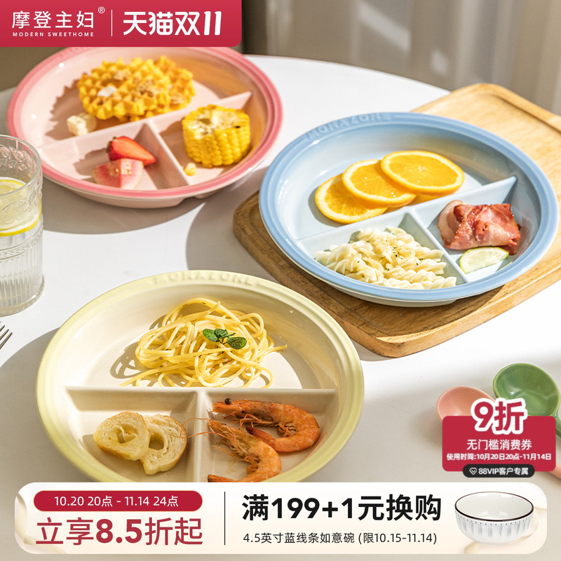 摩登主妇MONAZONE分格盘211减脂减肥专用餐盘陶瓷餐具大人早餐盘