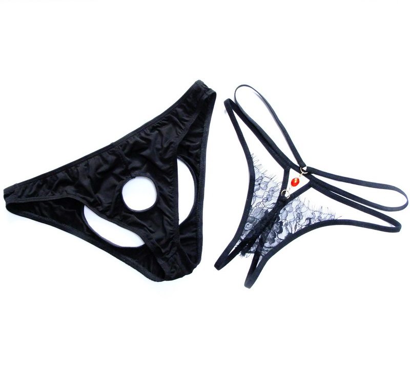 情侣内裤三角裤丁字裤男女T裤性感镂空蕾丝开口诱惑骚内裤QL-159