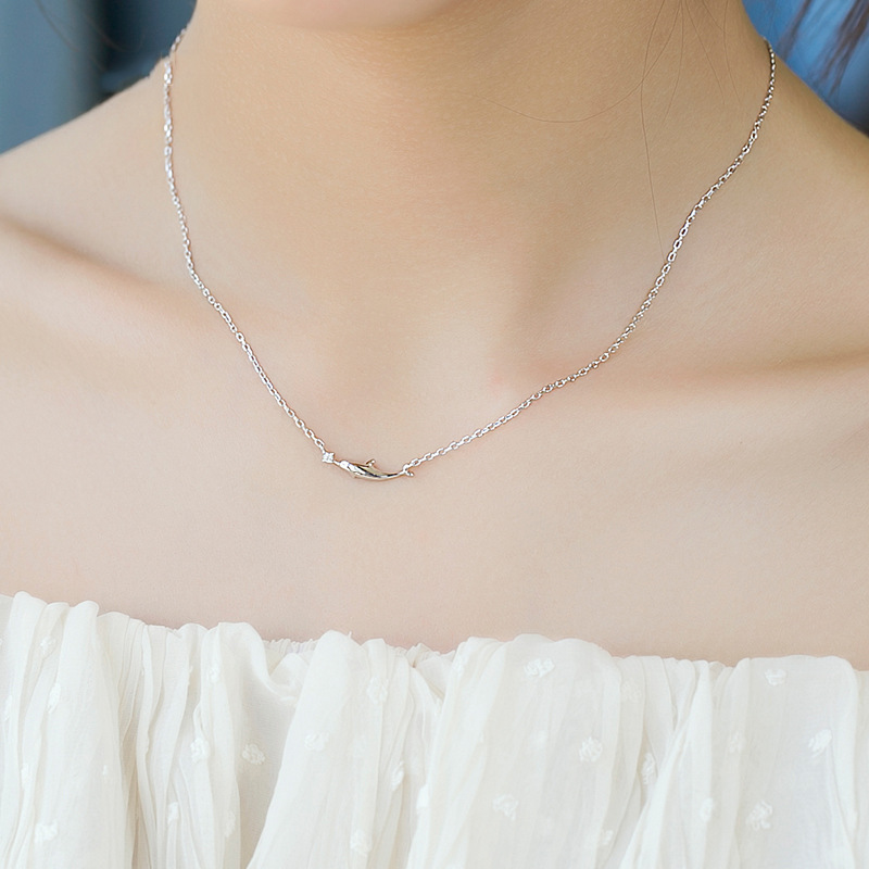 925银可爱海豚项链女锁骨链银饰品日韩简约小鱼韩国生日礼物学生