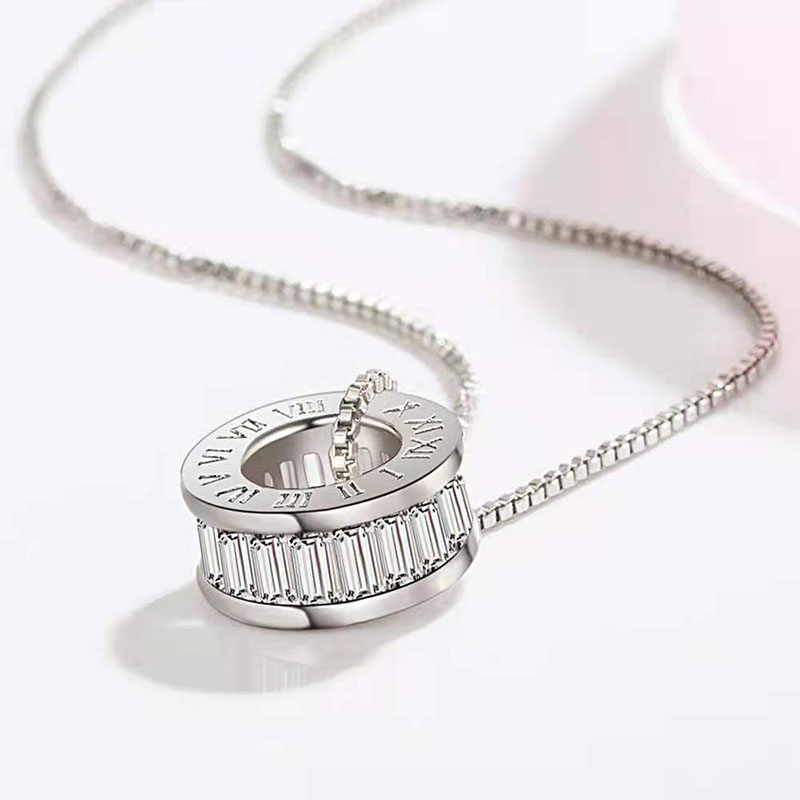S925纯银镶钻项链女款水晶吊坠日韩简约锁骨链时尚首饰生日礼物