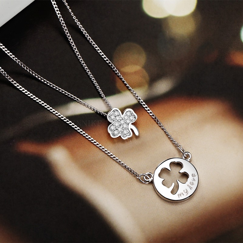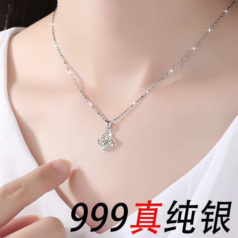 s999纯银四叶草项链女锁骨链日韩版七夕情人节简约送女友生日礼物