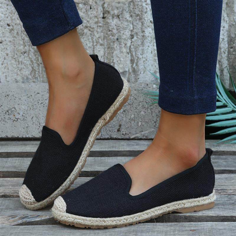 渔夫鞋女厚底2022年春款纯色大码草编鞋休闲乐福鞋帆布一脚蹬单鞋