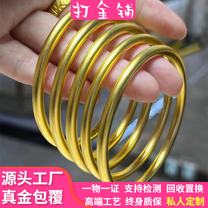 金店同款古法素圈999手镯女款仿黄金镯子传承首饰妈妈礼物镀金