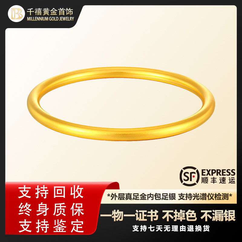 水贝古法黄金素圈手镯实心9999金包银传承金镯子足金闭口送礼物女