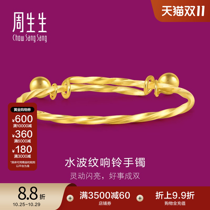 周生生黄金足金BB宝宝儿童手镯响铃铃铛金镯子满月送礼13195k