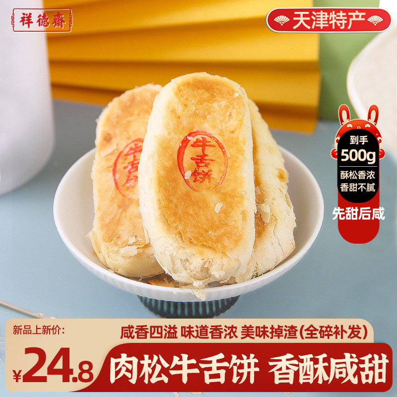 祥徳斋天津特产肉松牛舌饼老字号京八件酥皮糕点心咸甜口味一字酥
