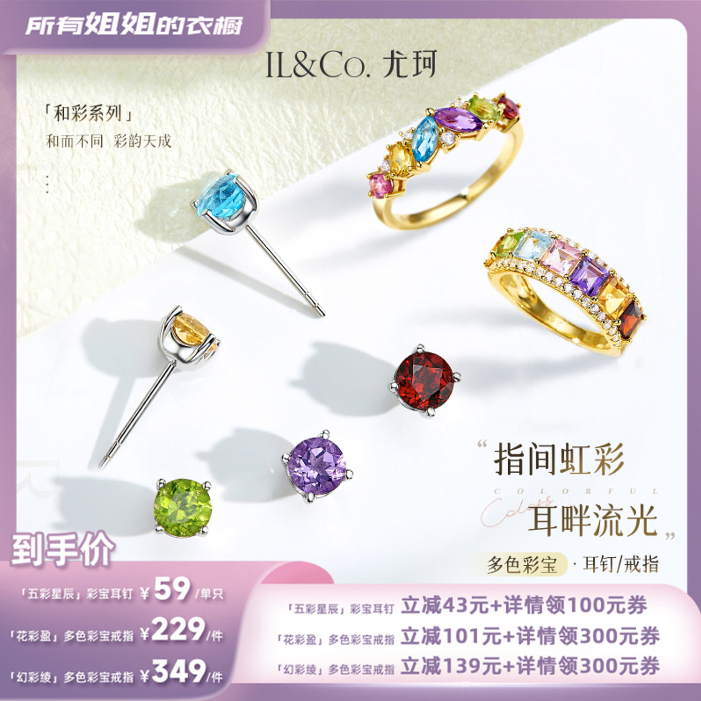 【所有姐姐的衣橱】ILCO尤珂「五彩星辰」S925银天然彩宝耳钉戒指