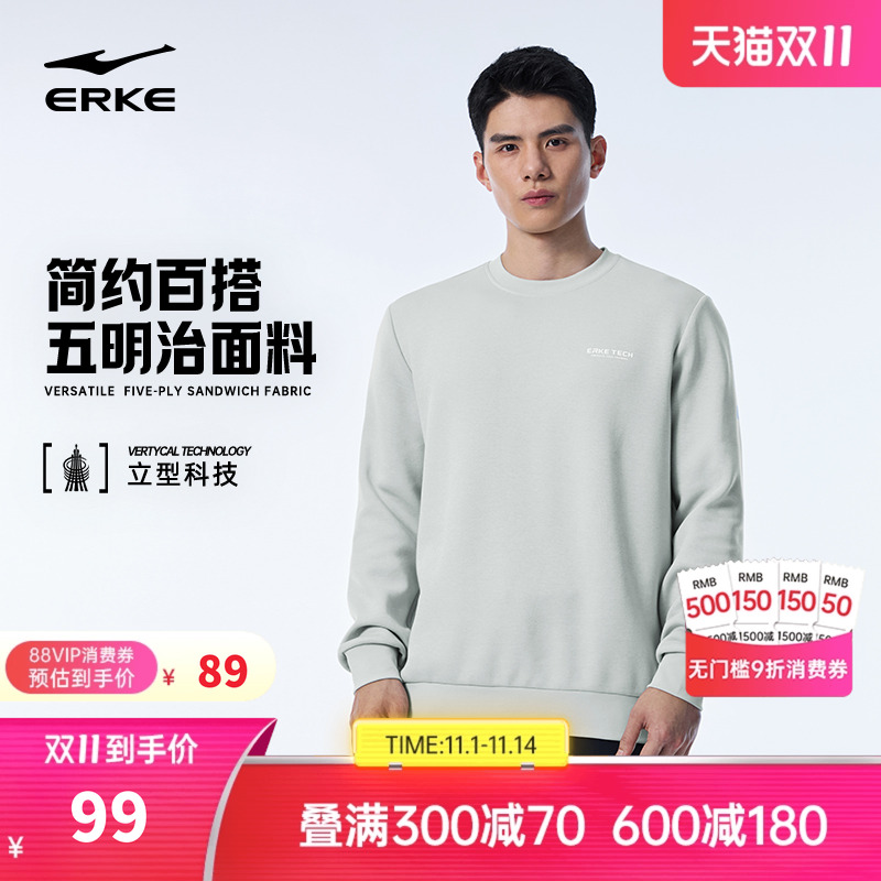鸿星尔克卫衣男秋冬新款男士男生青少年加绒运动圆领长袖上衣男装