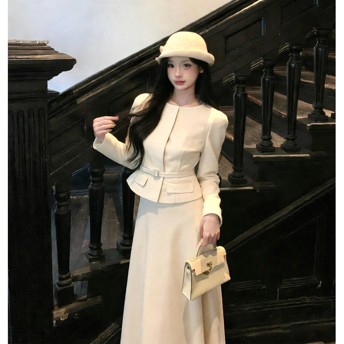 - 两件套毛呢外套