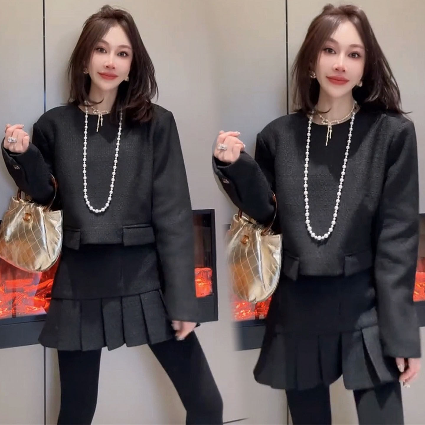 轻奢小香风时尚套装女2026春季设计感上衣百褶裙高级感显瘦两件套