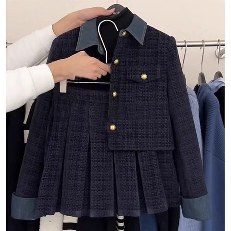 小香风加厚保暖时尚套装女2026春季新款毛呢外套百褶裙两件套女