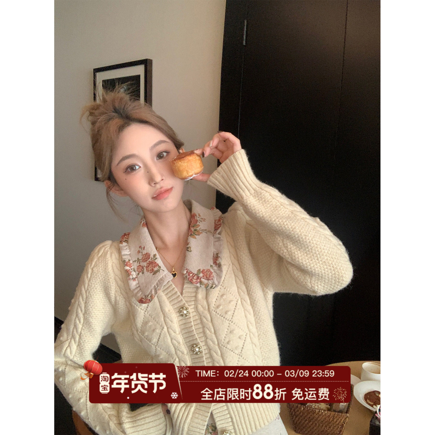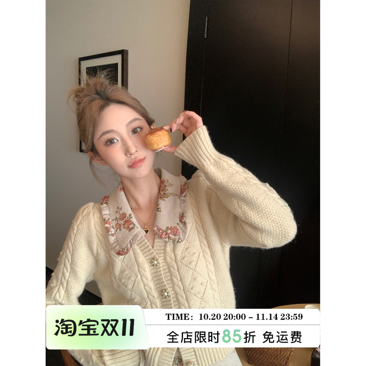 MLS 时尚套装女春季新款小香风针织麻花毛衣内搭碎花半身裙两件套