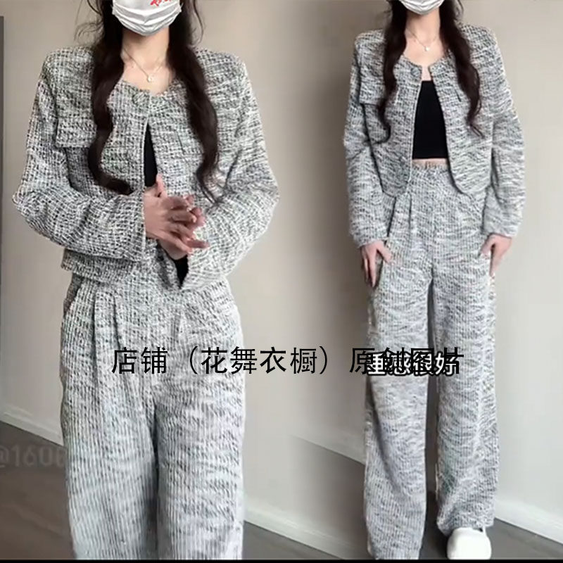 2026春季小香风套装女高级感粗花呢短外套阔腿裤两件套休闲时尚潮