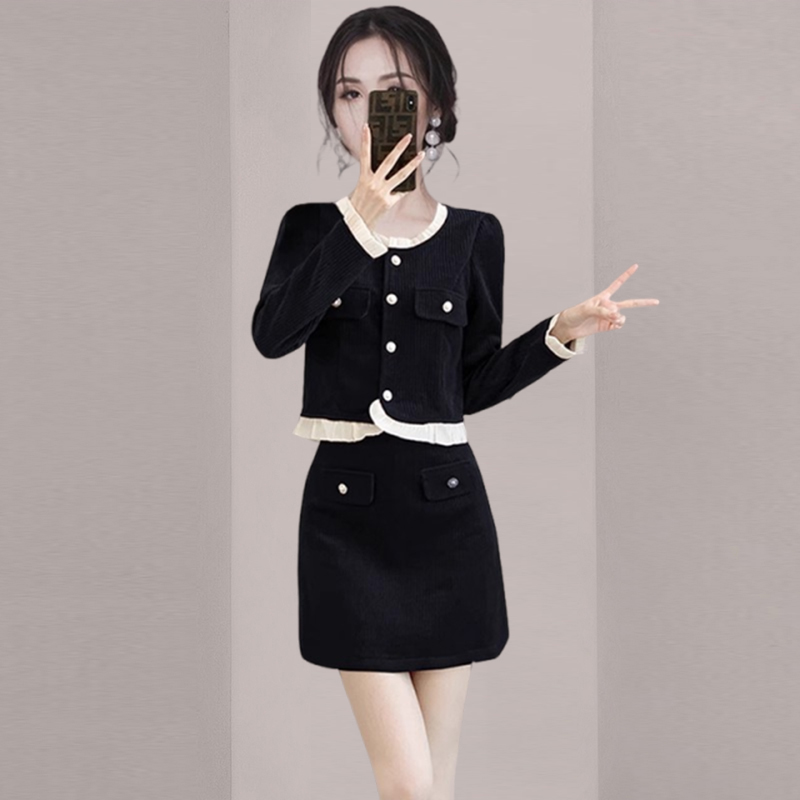 超火时尚小香风爆款套装女2025春季新款流行气质显瘦灯芯绒两件套