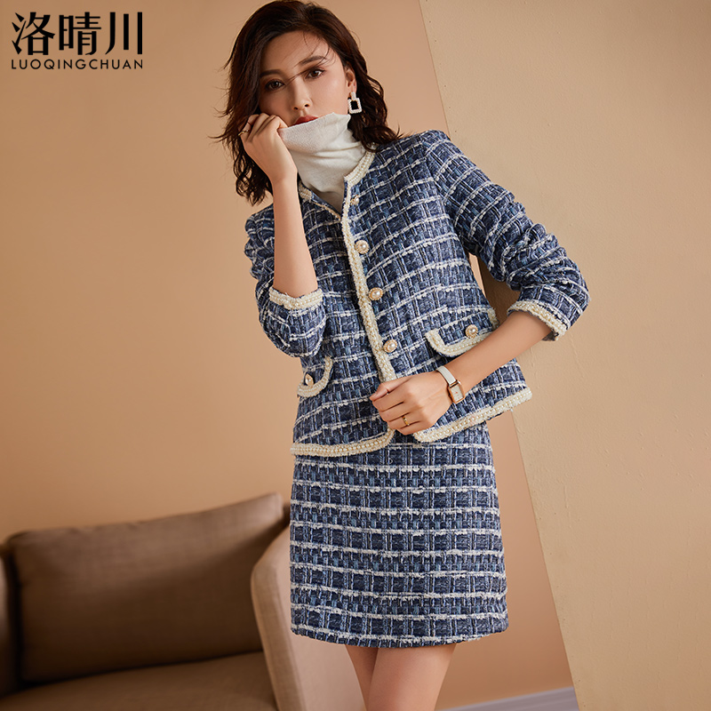 洛晴川2025春季新款时尚套装女小香风外套+半身裙两件套优雅