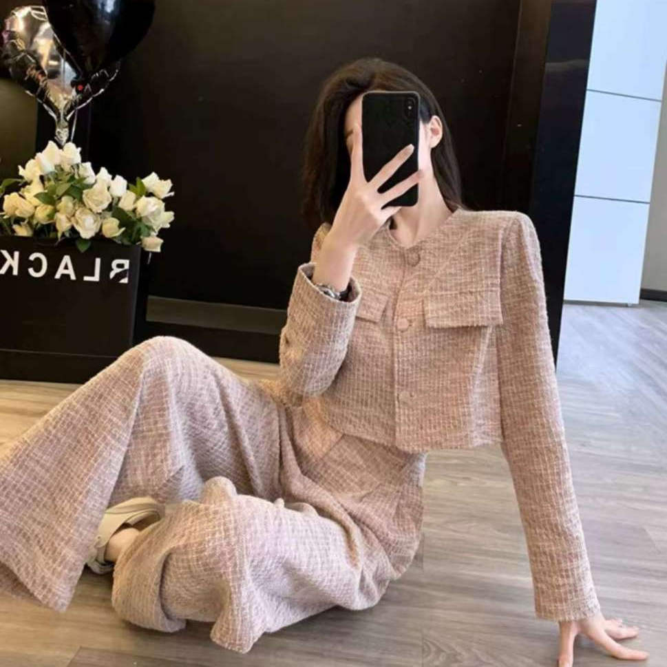 小香风时尚套装女2025春季款气质简约高级感洋气显瘦阔腿裤两件套