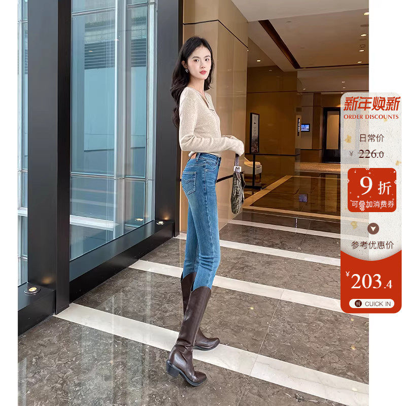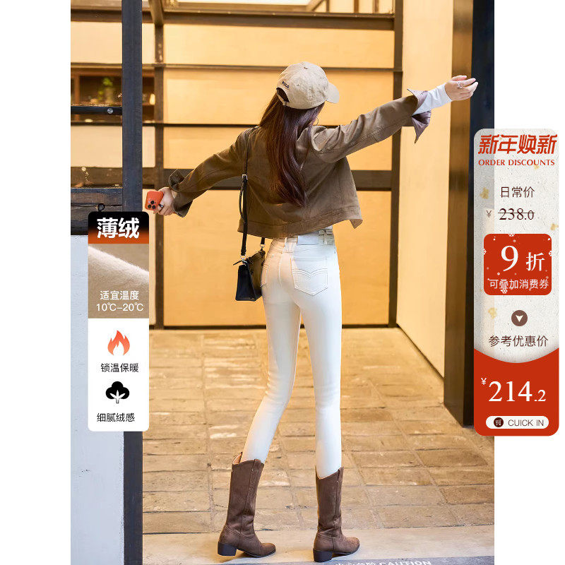 - 加绒牛仔铅笔裤女长裤