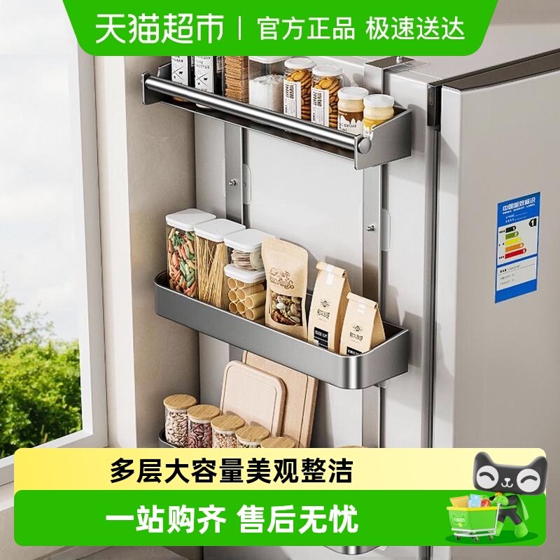 卡贝厨房置物架冰箱侧面收纳架壁挂式多功能多层调料用品保鲜膜架