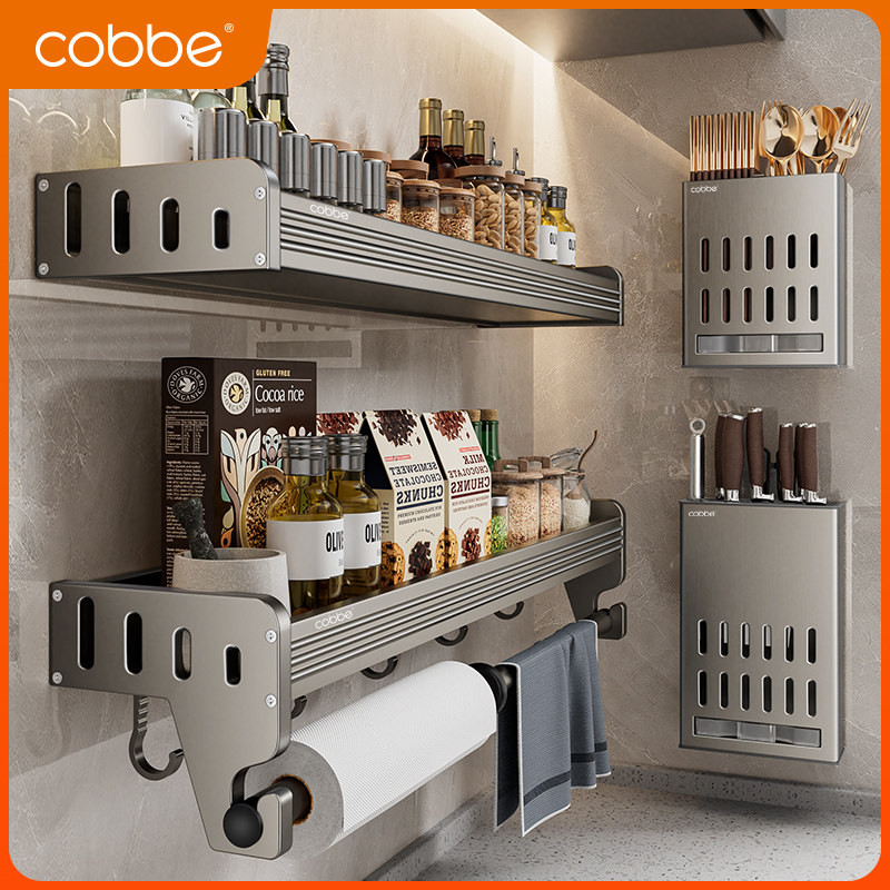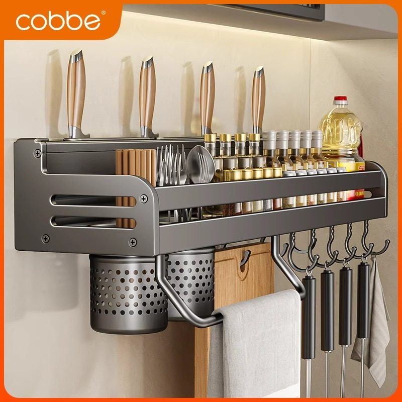 卡贝厨房置物架壁挂式调料架多功能免打孔收纳架刀架子筷子锅铲架