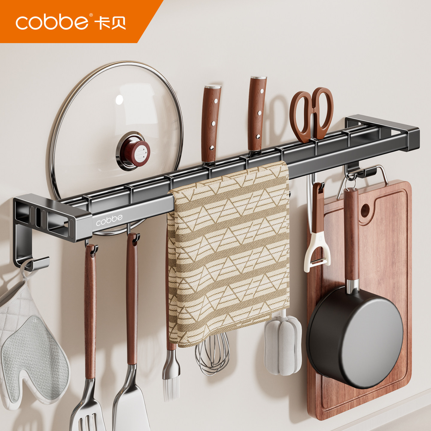 卡贝厨房置物架挂钩勺子铲子挂架免打孔多功能挂杆锅铲抹布收纳杆