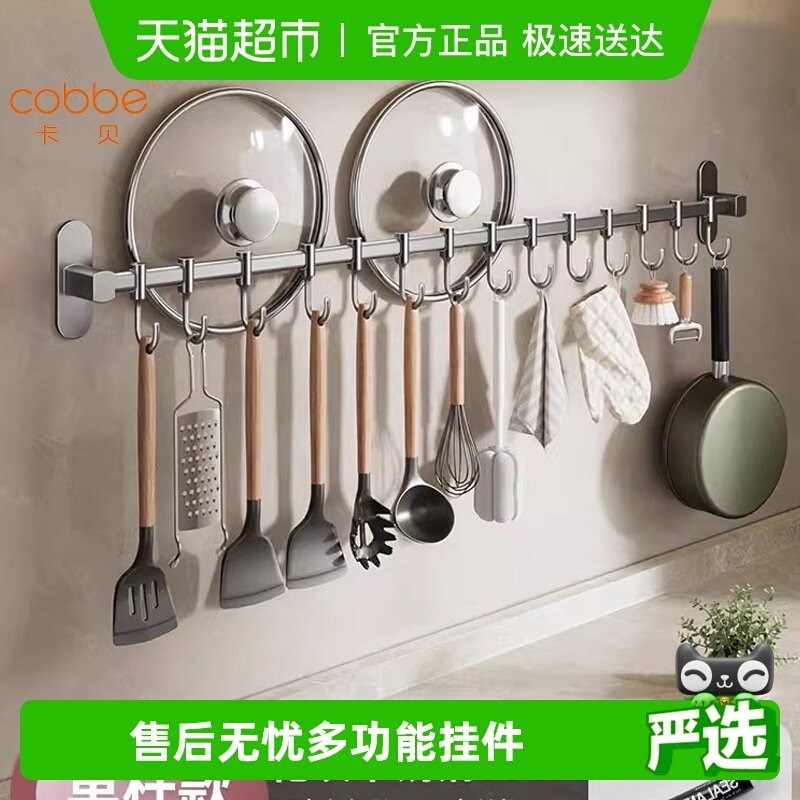 卡贝厨房壁挂置物架挂钩勺子铲子挂架不锈钢免打孔多功能挂杆收纳