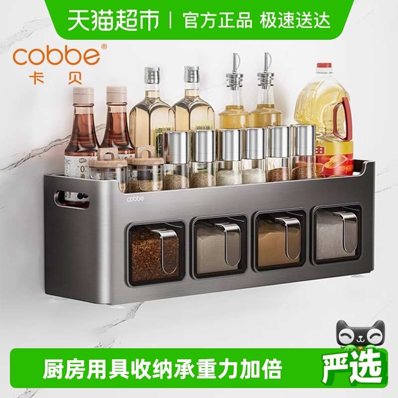 卡贝厨房置物架免打孔壁挂调料架加宽调味品不锈钢家用大全收纳架