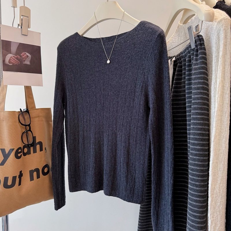 针织衫女圆领修身套头长袖内搭显瘦百搭薄款羊毛毛衣洋气打底上衣