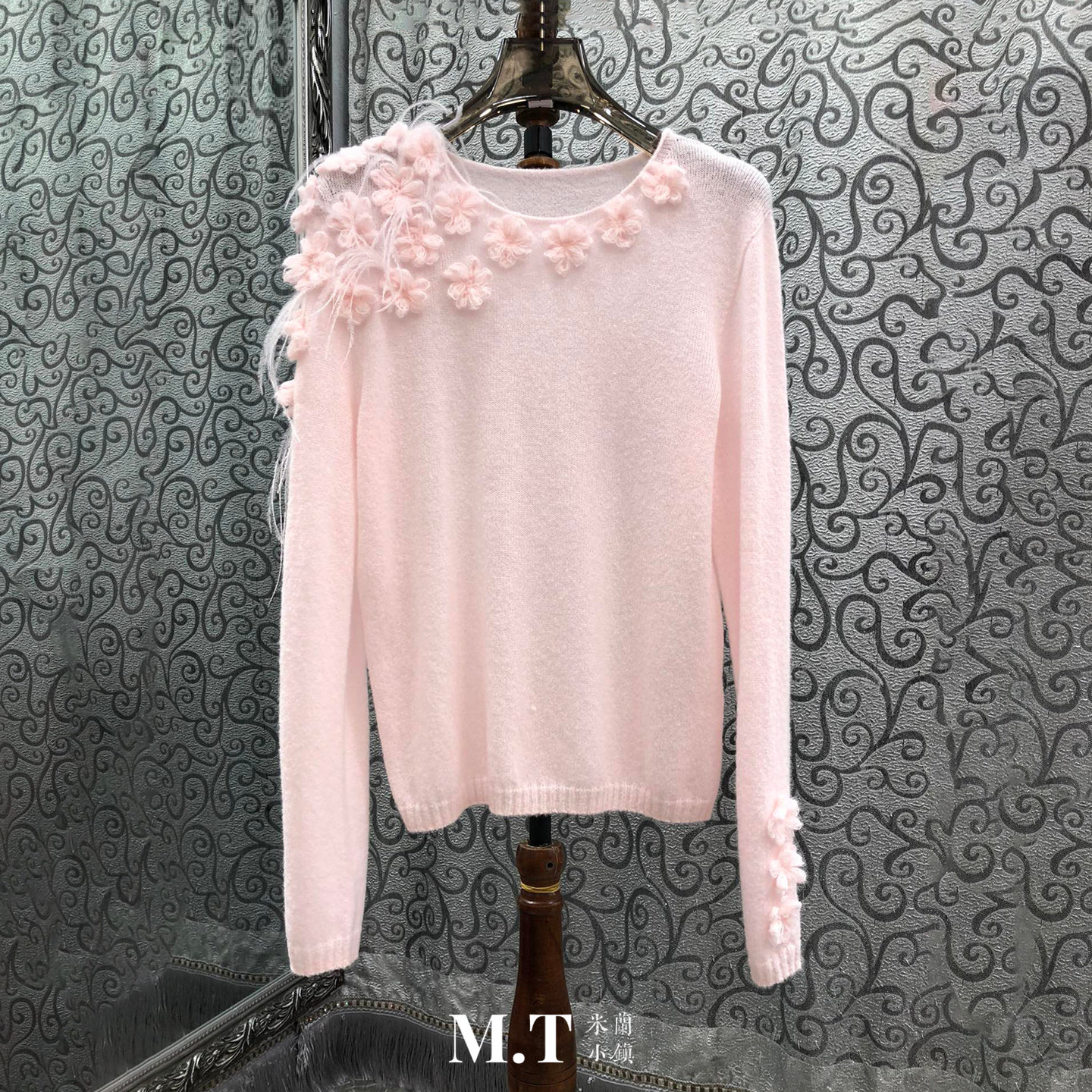 米兰小镇南油版本立体线团花朵羽毛纯色长袖套头薄毛衣小衫女I23