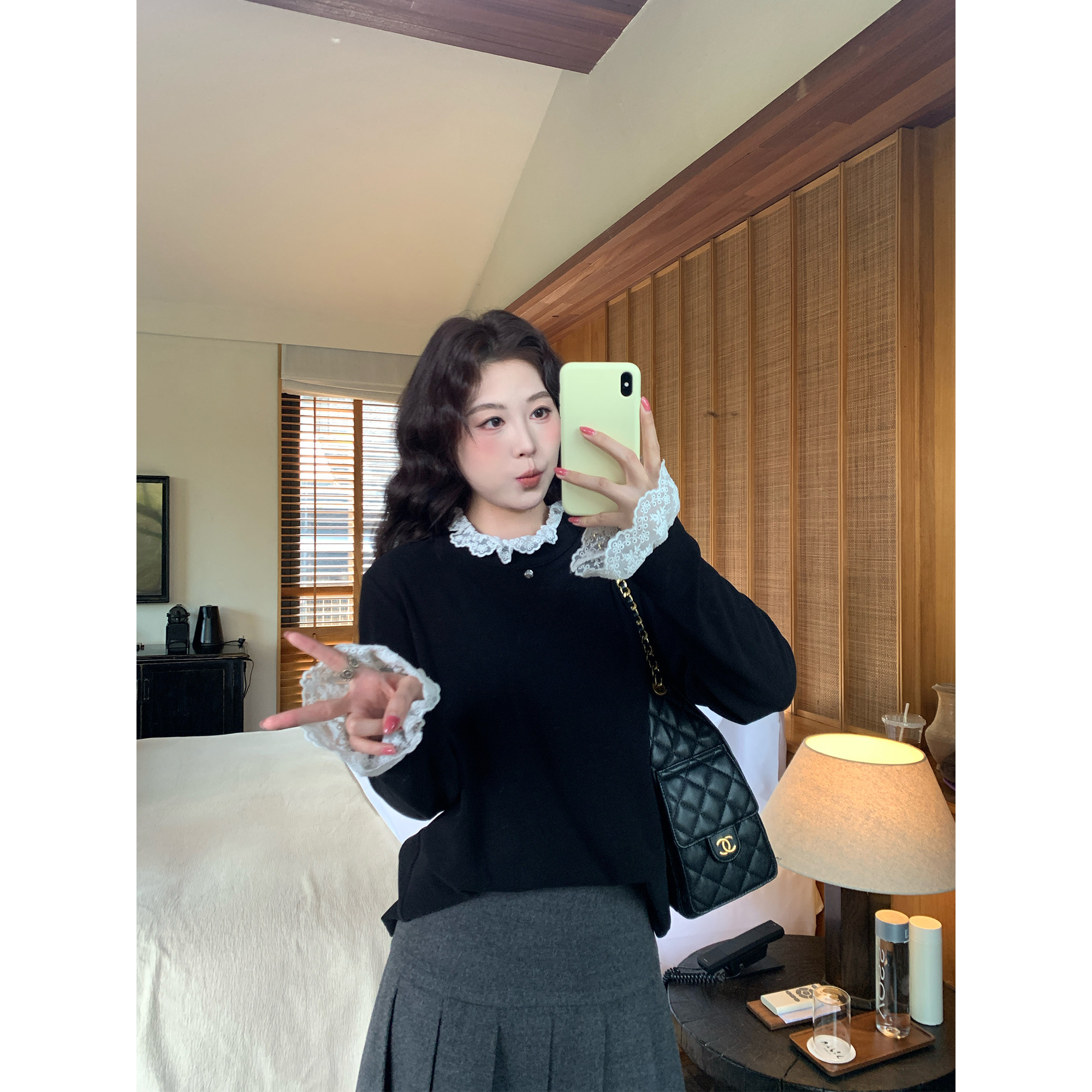- 蕾丝针织衫女打底衫