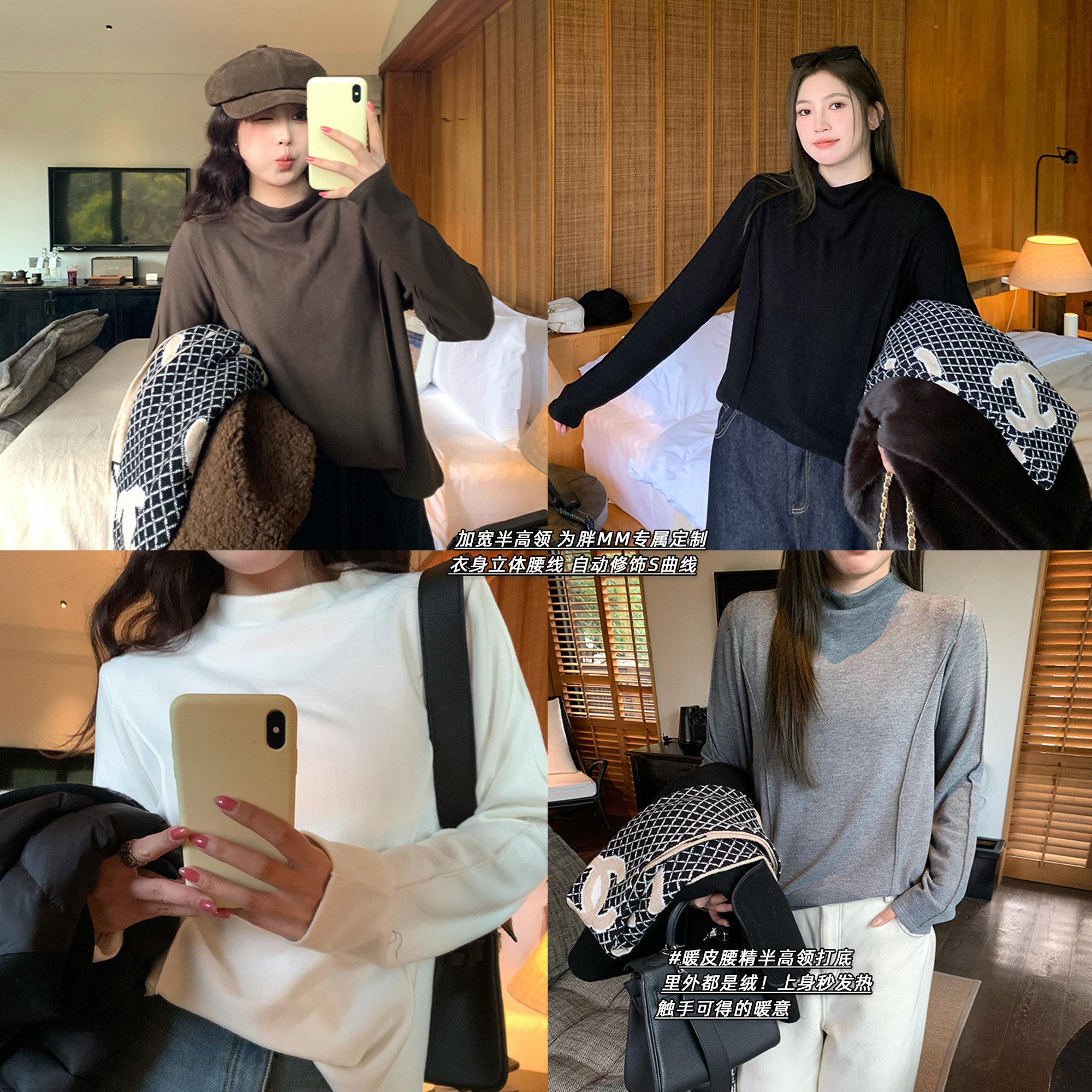 - 半高领白色打底衫女