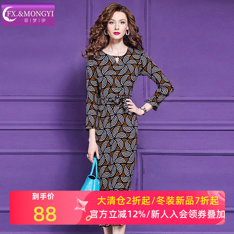 菲梦伊印花连衣裙女秋季复古高级感轻熟优雅气质阔太太中长款裙子