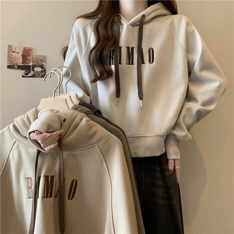 秋冬韩版卡通刺绣连帽外套百搭宽松加绒加厚套头卫衣女带帽学生潮