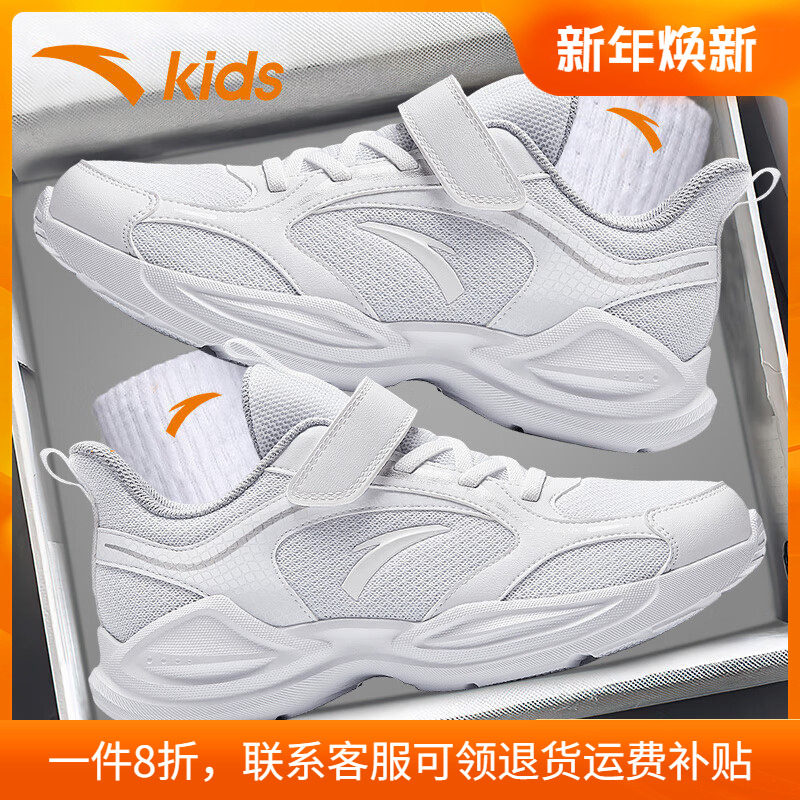 安踏儿童运动鞋男童2025新款冬季透气白色童鞋官方正品学生小白鞋