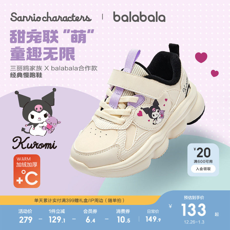 库洛米巴拉巴拉童鞋女童运动鞋老爹鞋儿童春秋白色透气三丽鸥鞋子
