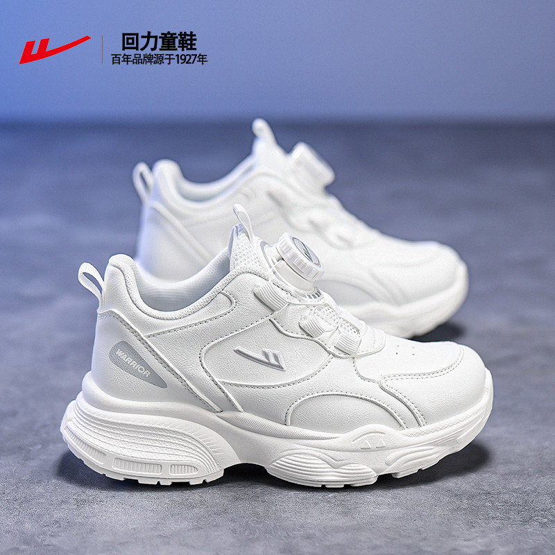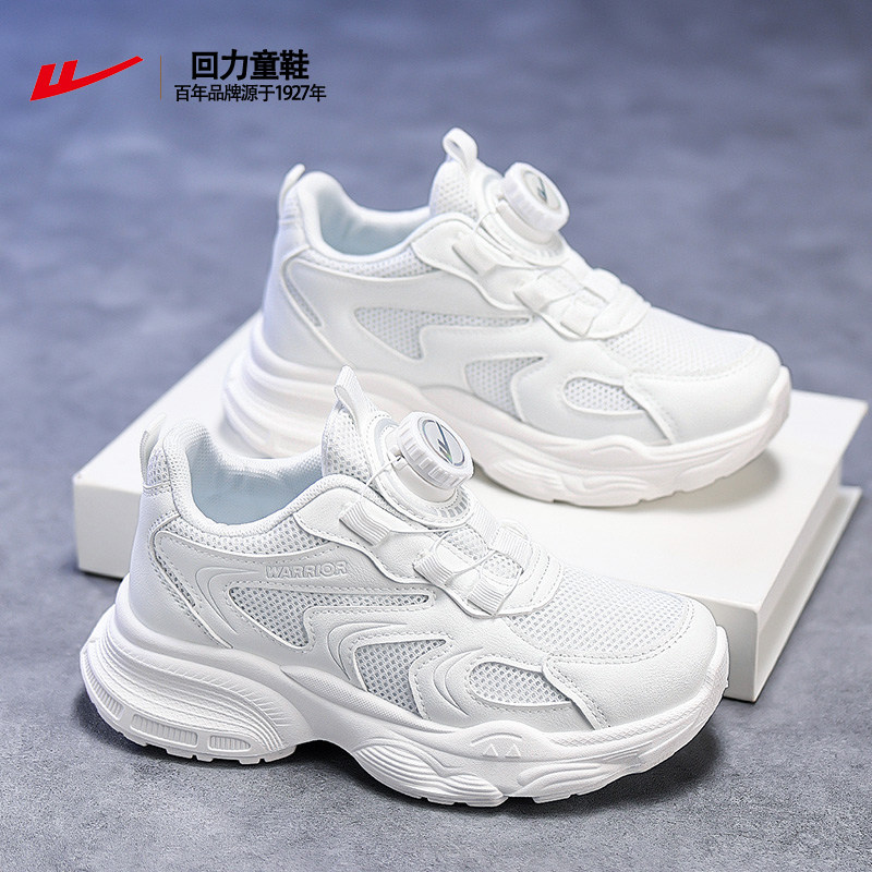 回力童鞋儿童春新款透气旋扣小学生小白男童女童白色运动鞋跑步鞋