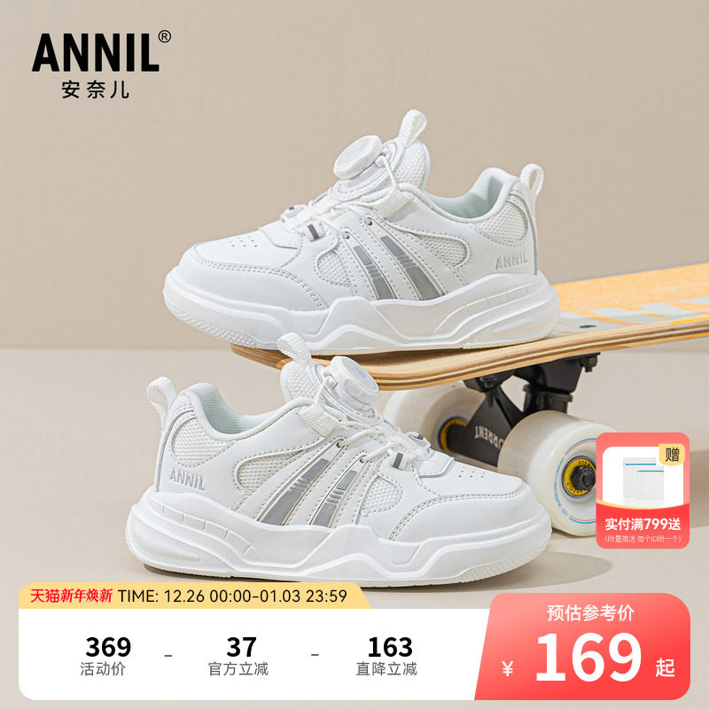 安奈儿童鞋男童白色运动鞋2025新款春秋透气男孩跑步鞋儿童小白鞋