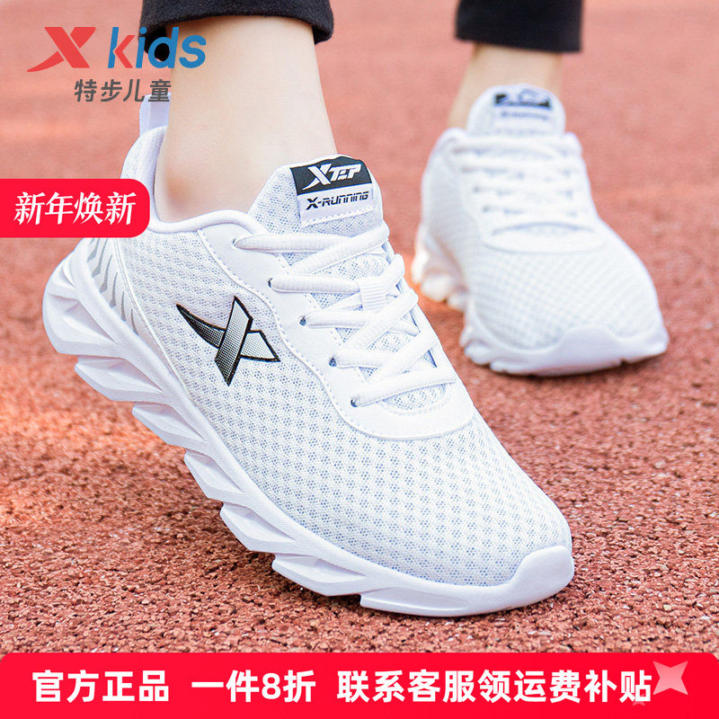 特步童鞋男童白色运动鞋冬季儿童小白鞋网面透气女童跑鞋大童网鞋