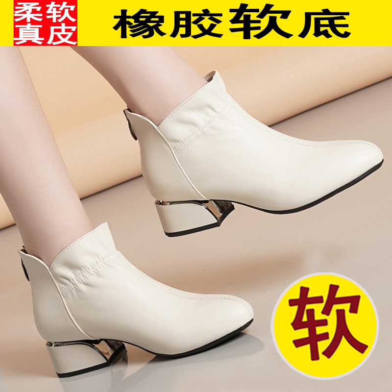 足力健旗舰店2025年冬季中年时尚女鞋妈妈短靴软底靴子真皮鞋女