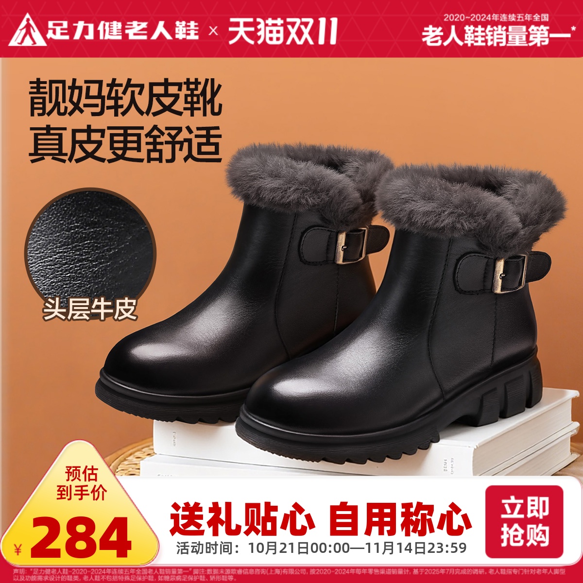 足力健旗舰店老人鞋中年妈妈冬季加绒保暖棉鞋加厚雪地靴高帮女鞋
