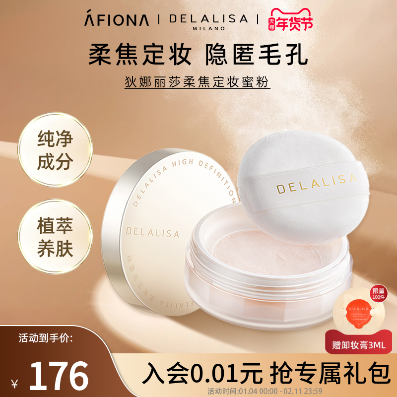 狄娜丽莎柔焦定妆蜜粉饼去油防水持久不脱妆透明细腻雾面哑光散粉